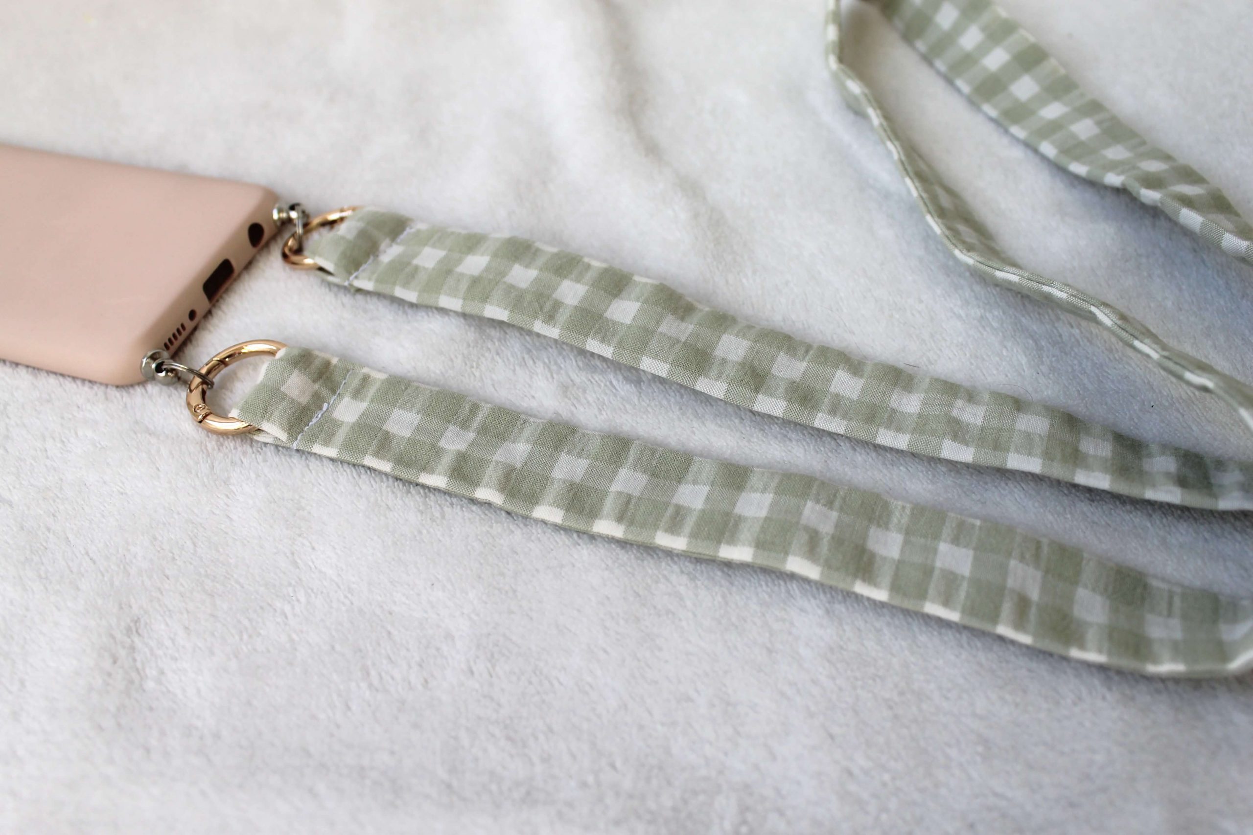 Esta cinta para móvil está confeccionada en algodón 100% y lleva dos anillas doradas para engancharlas a la funda de tu móvil. Las anillas se pueden quitar, facilitando el lavado en máquina (nunca a un máximo de 30º). Recuerda no utilizar lejías ni productos agresivos que dañen el tejido. Puedes plancharlo a una temperatura bajita adecuada para el algodón.