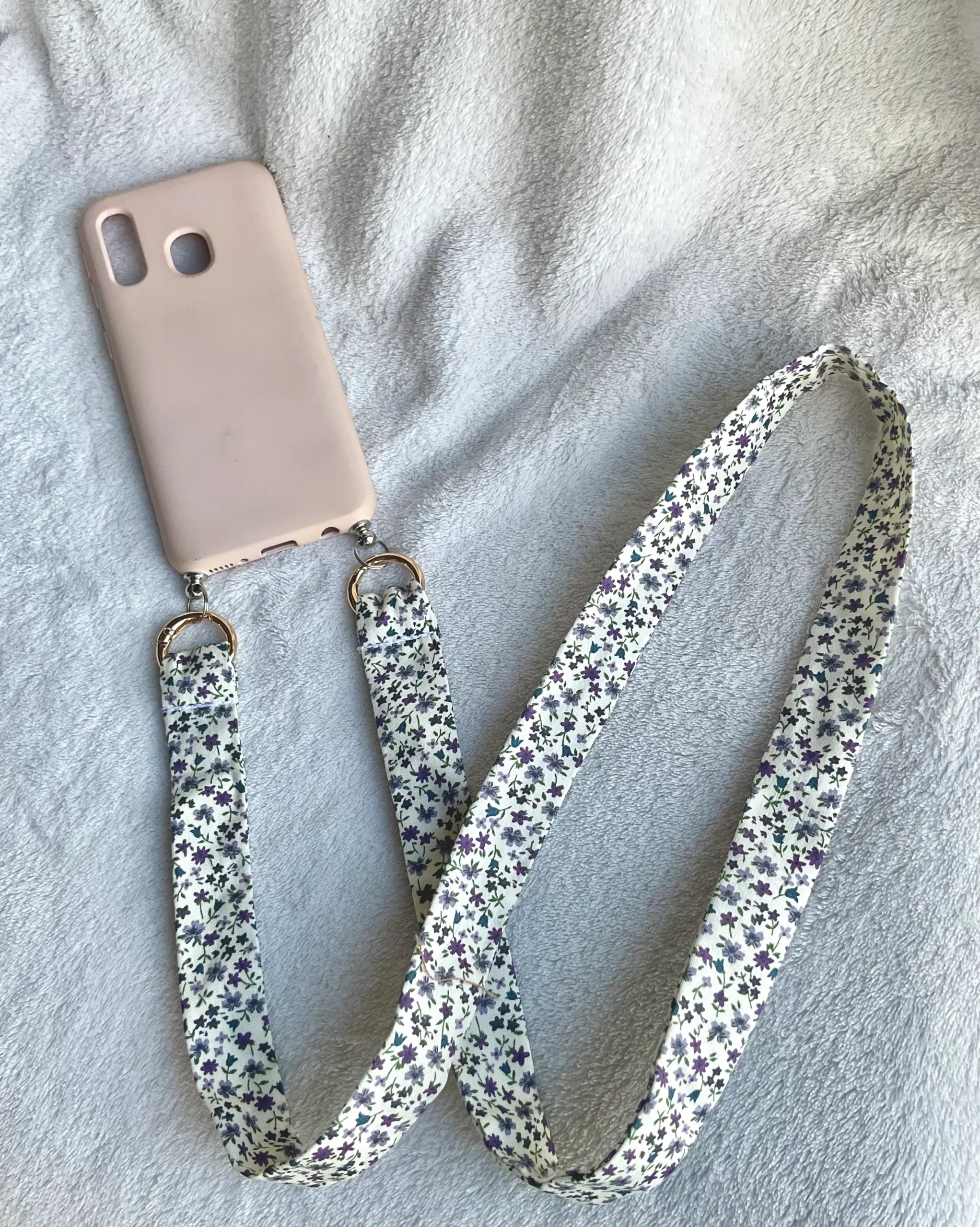 Esta cinta para móvil está confeccionada en algodón 100% y lleva dos anillas doradas para engancharlas a la funda de tu móvil. Las anillas se pueden quitar, facilitando el lavado en máquina (nunca a un máximo de 30º). Recuerda no utilizar lejías ni productos agresivos que dañen el tejido. Puedes plancharlo a una temperatura bajita adecuada para el algodón.