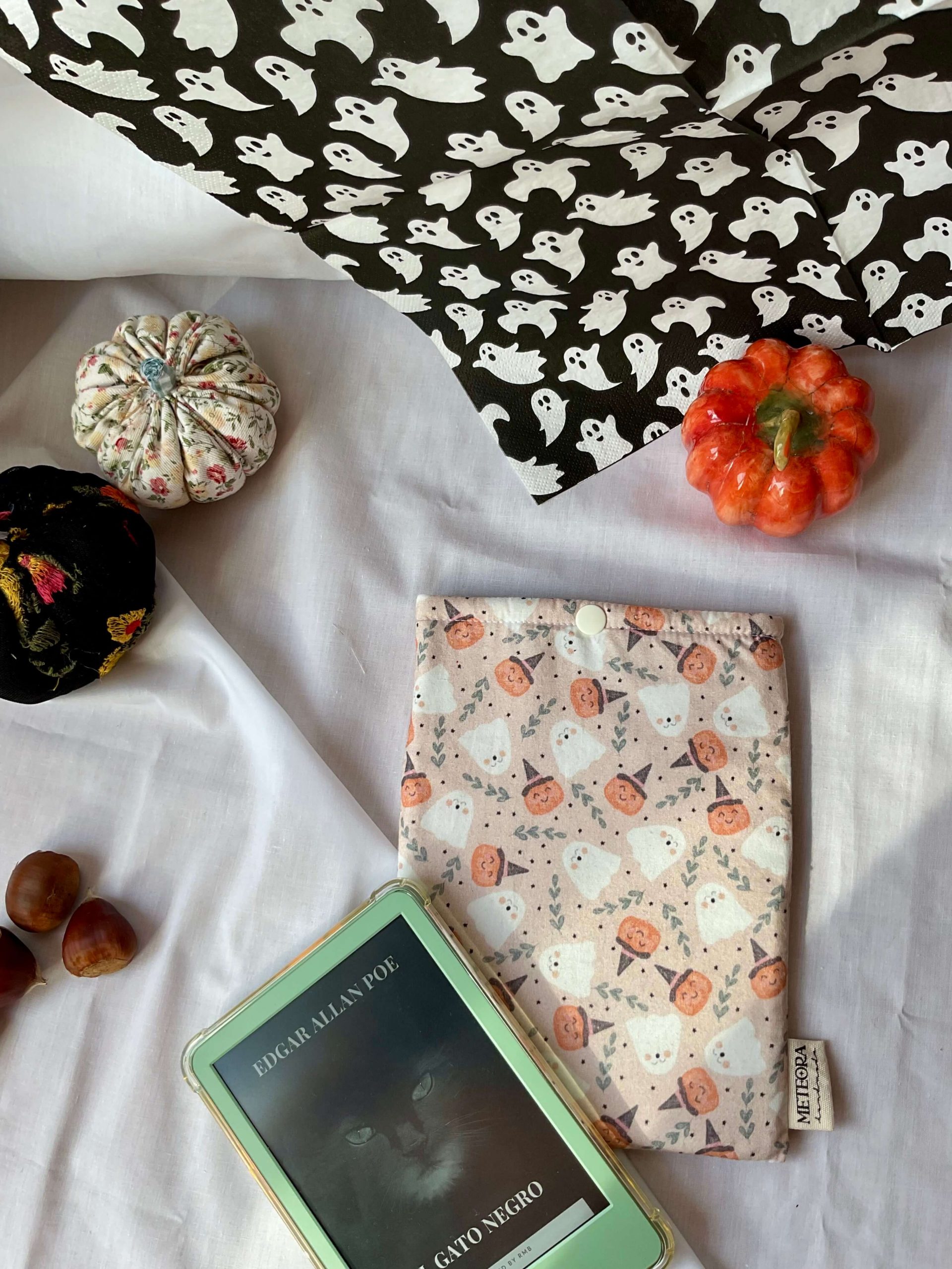 Los diseños están inspirados en el espíritu de Halloween y el ambiente acogedor del otoño. Encontrarás modelos con calabazas sonrientes, fantasmas divertidos y estampados florales vintage, perfectos para quienes disfrutan de los pequeños detalles y del encanto de lo artesanal. Así, cada funda no solo protege tu Kindle, sino que también refleja tu estilo y tu amor por la lectura.