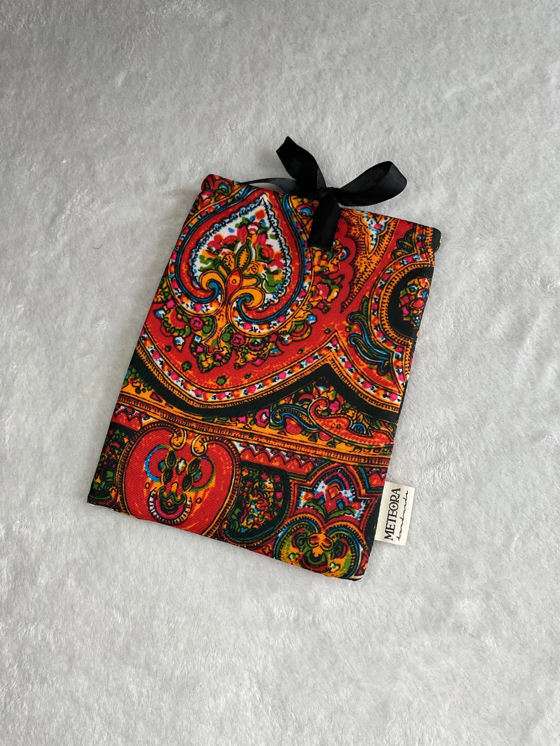 La funda para libro electrónico está confeccionada en algodón 100% , orgánico, y totalmente hecha a mano. Va colchada y cuenta con un cierre de lazada en la parte superior. Sus medidas son de aproximadamente: 16 x 21 cm.