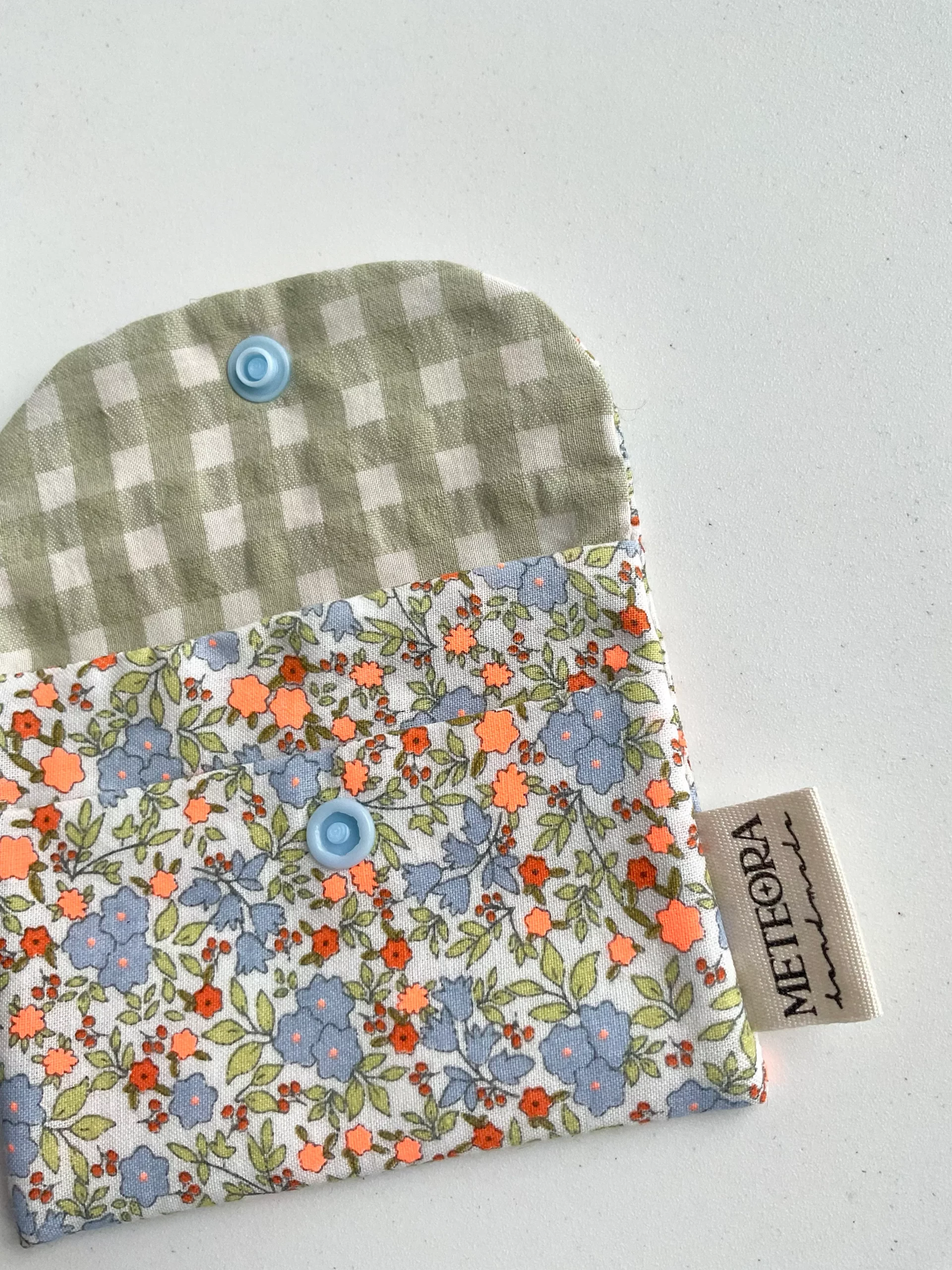 A veces no nos apetece llevar un bolso enorme con una cartera aparatosa, o tenemos bolsillos demasiado pequeños, o simplemente salimos a dar un paseo corto y lo único que necesitamos llevar es algo de dinero, alguna tarjeta y las llaves de casa verdad? Pues la mini cartera Hortensia cabe en cualquier sitio, y tiene la  capacidad justa para dos o tres tarjetas, algún billete y unas monedas. No es nada rígida, se cierra fácilmente con un snap y es súper práctica para llevar al trabajo o para utilizar como tarjetero para llevar aquellas tarjetas que más utilices, como la del bus o la del gimnasio, por ejemplo.